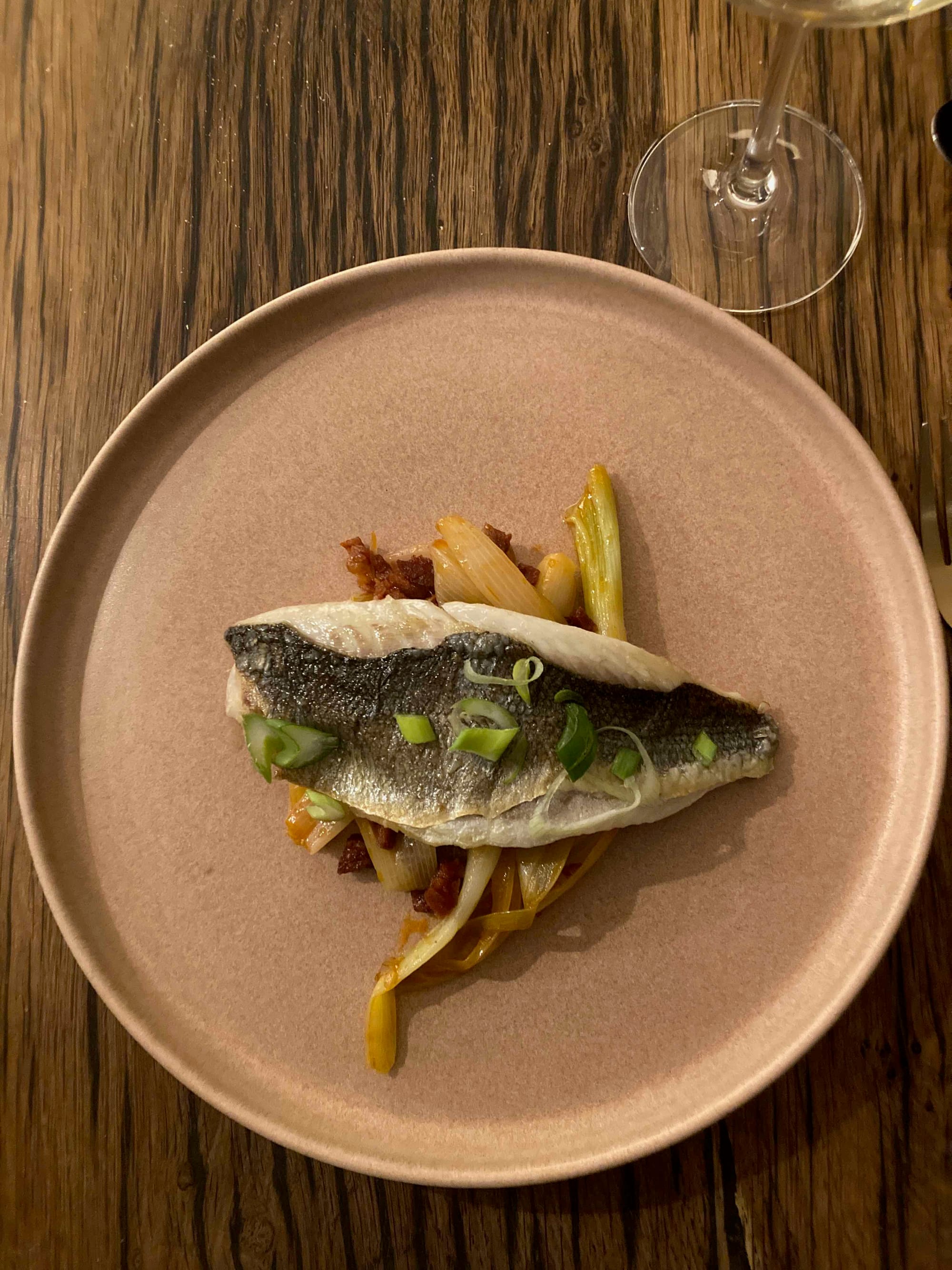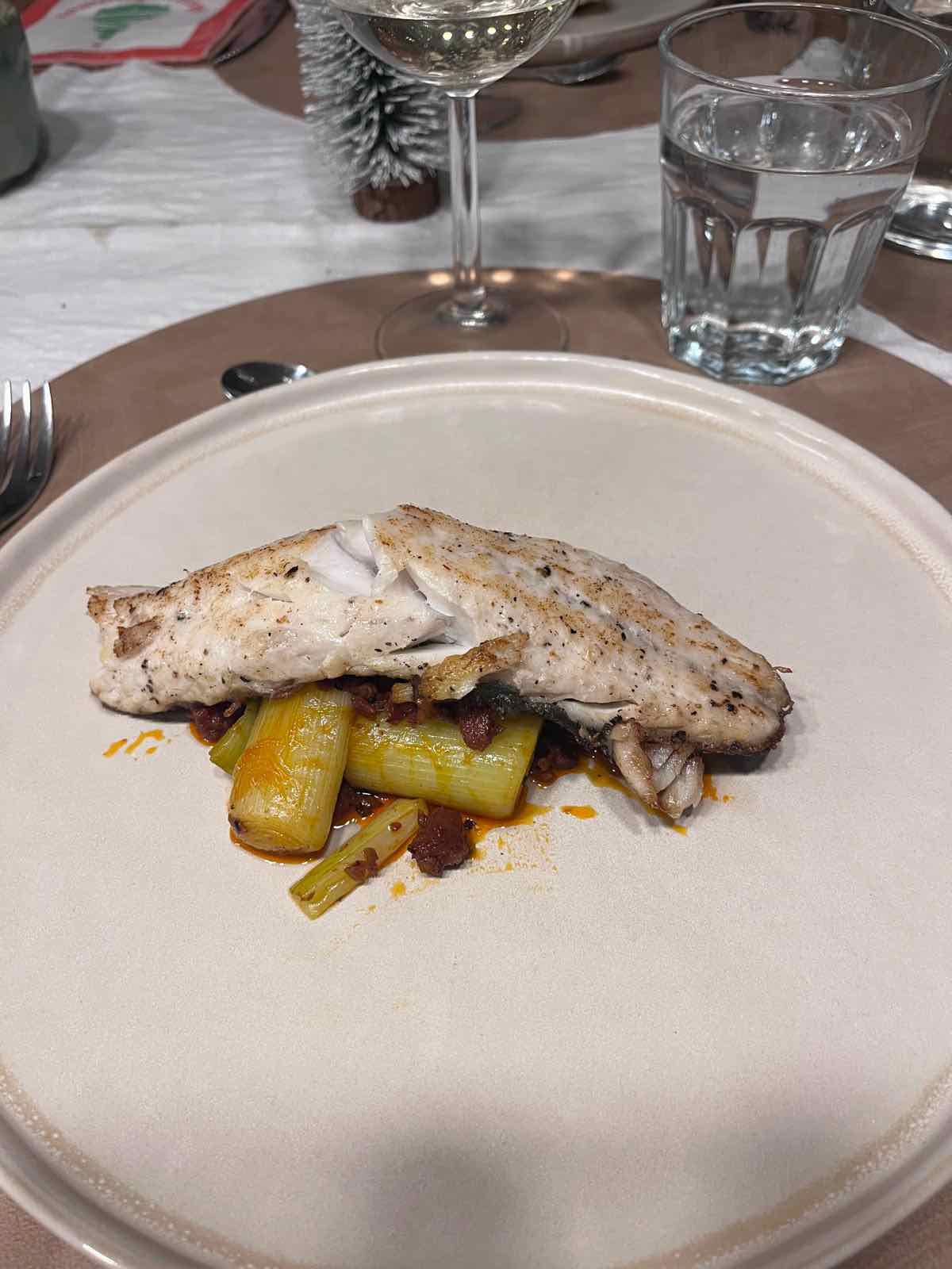 Plat: Bar / chorizo / poireaux