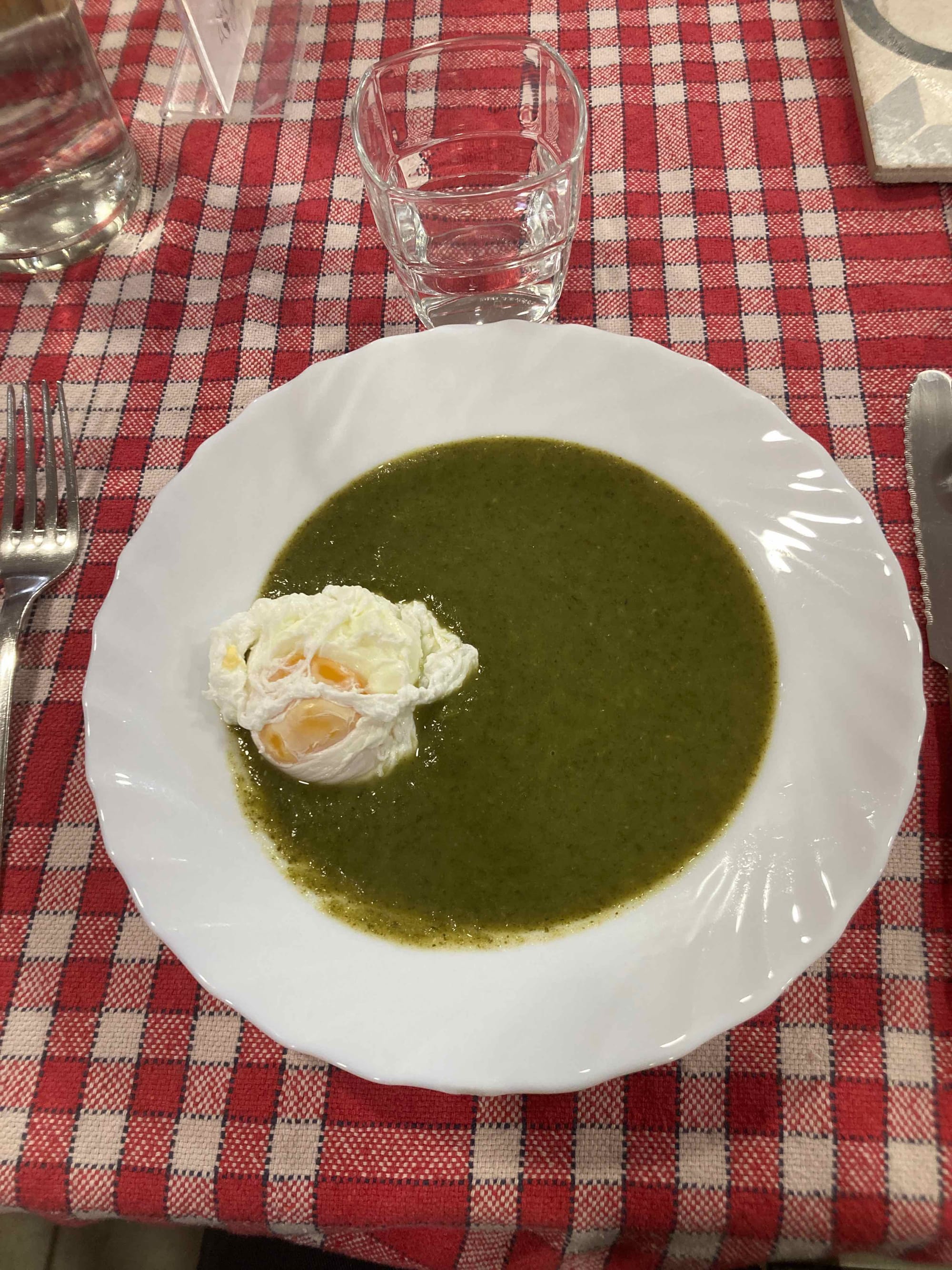 Entrée: Velouté cresson et oeuf poché