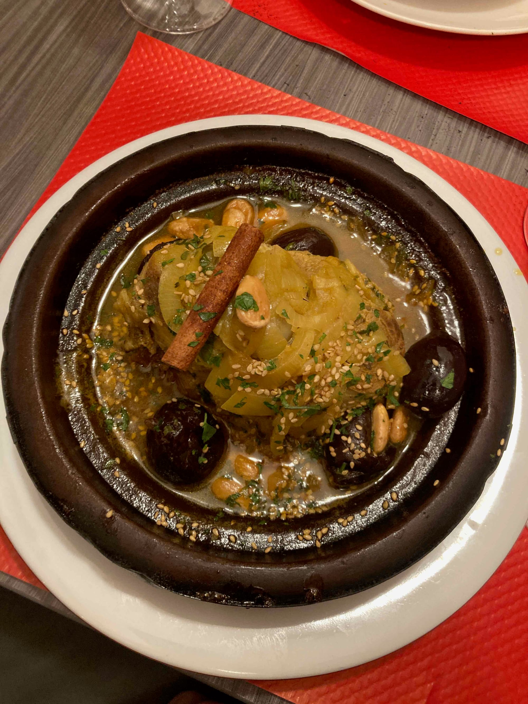 Par ce froid et cette pluie, j'avais juste envie d'un bon tajine avant de partir. Une petite escale à Nation et le tour est joué. Me voilà devant ce tajine Agneau / Pruneaux / Amandes. Je vous laisse contempler les saveurs que dégagent cette photo.