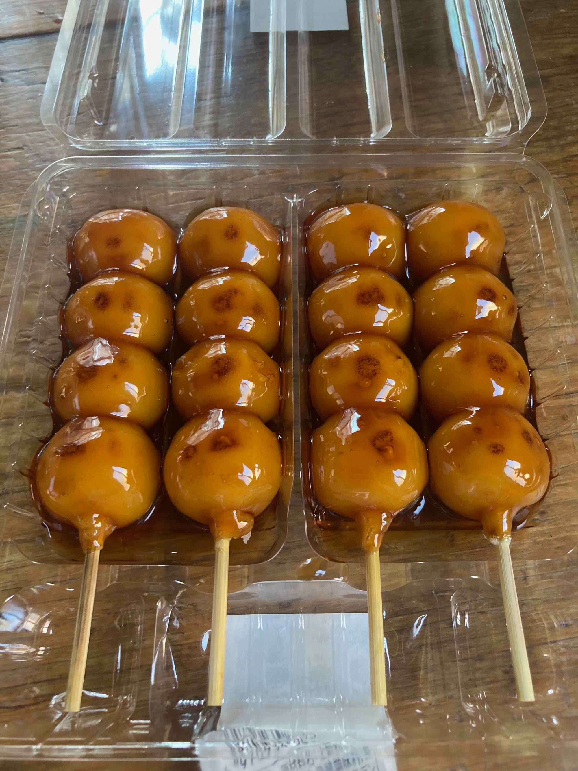 - Shiratama Dango (petites boules servis en brochette ou dans une soupe d'haricots rouges, fait à base de farine de riz)